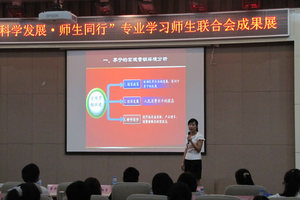 瞿延辉为晚会致开幕词,指出教师开展专业化指导,提升学生专业素养以及研究性学习能力是十分必要的。他对学院杏林队在全国高校市场营销大赛中获得省级二等奖表示赞扬,并强调要认真贯彻胡锦涛总书记提出的“培养以人为本、德育为先、能力为重、全面发展的高素质人才”的培养路线。