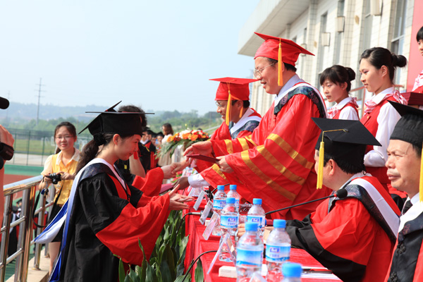 人文信息管理学院2007级公共事业管理专业陈若筠代表毕业生表达了对母校、对恩师和同学、朋友的感激之情,并传诵了 2011 届全体毕业生的共同心声:“祝愿母校硕果累累,续写辉煌!祝愿恩师身体健康,桃李满疆!祝愿学弟学妹们学业有成,书写华章!”