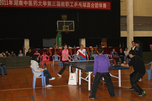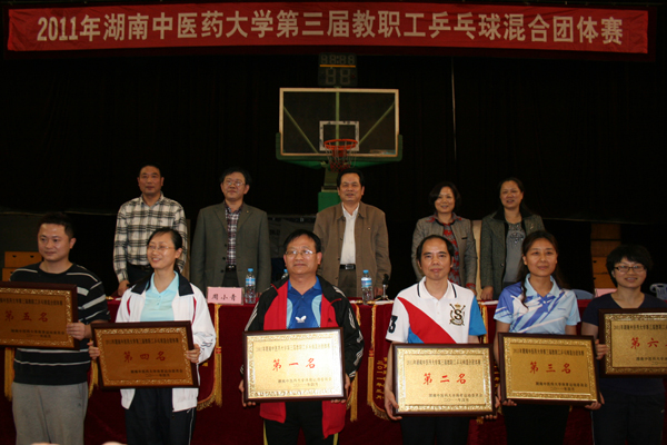 4 月 16 日晚 ,我校第三届教职工乒乓球混合团体赛在东塘校区体育馆落幕,经过紧张激烈的角逐,湘杏学院分工会技压群雄折桂,药学院分工会和基础医学院分工会分获亚军和季军,后勤服务总公司分工会、机关分工会和图书馆分工会分别获得第四、五、六名。