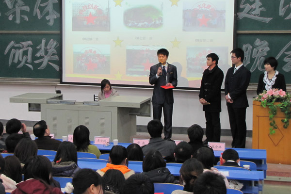 此次班集体建设工程颁奖盛典设立“先进班集体”、“特色文化建设班”、“科技创新班”等九个奖项,颁奖环节悬念迭出,现场气氛非常活跃。此番获奖班级名单采取现场揭晓的形式,将九个候选班级集体照特设为九宫格,由各奖项上届获奖班级代表担任颁奖嘉宾,揭晓结果,分享经验。其中, 2008 公管一班荣摘班集体建设工程 “先进班集体”称号; 2008 计算机班的同学们三年如一日帮助身残志坚的龚后武同学,获评“思想素质模范班”称号。