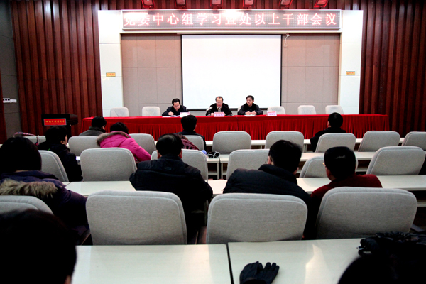 1 月 18 日上午,我校在含浦校区国际交流中心报告厅召开了党委中心组(扩大)学习暨处以上干部会议。校党委书记、研究院院长蔡光先做了题为《学习贯彻中央和省委全会精神,加快湖南中医药大学新跨越》的主题报告,校党委副书记、校长廖端芳主持,校领导谭达全、黄政德、陈弘、吕祖建、周小青等出席。
