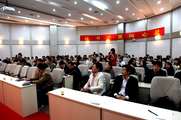 基础医学院肖子曾院长以犹太人用蜂蜜为孩子做启蒙教育为例, 提出“读书是甜蜜的”、“读书可以治病”等观点,提倡广大师生崇尚阅读,让阅读成为最自觉的追求。我校教师代表刘惠萍以自身角度出发,谈到可以多读一些教育学、心理学等应用性较强的书籍,这将对个人工作、生活大有裨益。学生代表谭茜则立足湖湘文化,引出“惟楚有才,于斯为盛”,以此呼吁大家多读书,读好书。