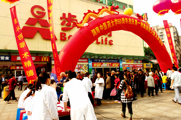 为庆祝建校 50 周年, 10 月 23 日我校所属的第一附属医院、第二附属医院、附属中西医结合医院、附属省第二人民医院、附属衡阳医院、附属常德医院、附属岳阳医院、附属宁乡人民医院、附属第二中西医结合医院、附属福田中医院和附属洛阳正骨医院等 11 所附属医院开展了大型联合义诊活动。 大型联合义诊活动在湖南、广东、河南三省同时启动, 100 多名专家参与义诊,并向市民赠送药品价值 60 余万元。