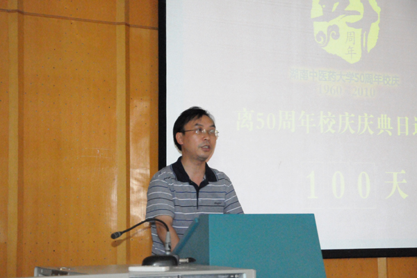 7 月 23 日 下午,我校 50 周年校庆筹备工作百日会战誓师大会在东塘校区隆重举行。校党委副书记陈弘出席大会并讲话,副校长何清湖主持会议。