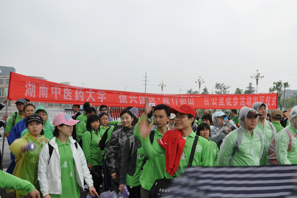 2010年是湖南中医药大学建校50周年校庆,在全校师生激情迎接校庆之际,来自校本部、附属医院的80余名教职工参与了“振兴国医 毅行韶山”百公里徒步活动,其中有36名教职工凭借自己坚强的毅力、坚定的信念和坚韧的意志,从含浦出发,徒步近百公里,途径花明楼,到达了伟大主席毛泽东的故乡——韶山。这是一次振兴国医的毅力之行、活力之行、魅力之行,展示了我校教职工的良好风貌,为大学五十周年校庆献上了一份特殊的厚礼!
