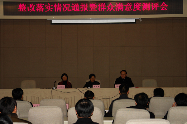 12 月 21 日 下午,学校在国际交流中心会议厅召开学习实践活动整改落实情况通报暨群众满意度测评会,对学习实践活动整改落实情况进行“回头看”,并组织开展了满意度测评。