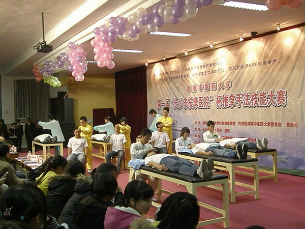 11月22 日晚,由湖南中医药大学针灸推拿学院、校团委、教务处联合主办,长沙按摩医院协办的湖南中医药大学首届推拿手法大赛在我校东塘校区学术报告厅隆重举行。几百名推拿好手云集于此,展奇功,献独技,向大家展现了一个集采纷呈的“推拿”盛会。
