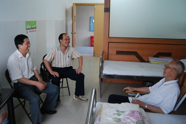 6 月 30 日,学校党办主任杨成林、组织部部长刘富林前往长沙市第三医院亲切看望在那里住院治疗的我校老红军冯国英同志,为他带去了学校党委、行政的亲切问候与良好祝愿。