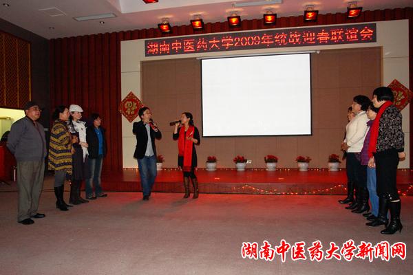 2009 年 1 月 13 日 下午,含浦新校区国际教育学院学术报告厅张灯结彩,洋溢着喜庆、祥和的节日气息, 2009 年迎春统战联谊会在这里隆重举行,党委副书记、副校长黄政德、党委副书记陈弘、副校长吕祖建、副校长蒋士生、副校长何清湖、纪委书记秦裕辉和学校各个民主党派成员、省、市政协委员、无党派代表人士、侨属代表共 150 多人参加了联谊会。宣传部、统战部部长虢剑波主持联谊会。