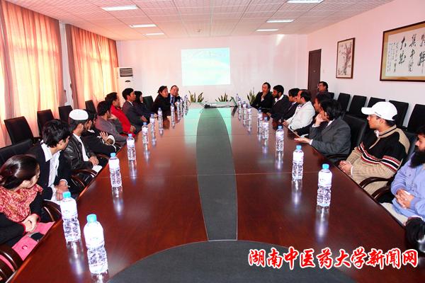 访问我校期间,何清湖副校长与叶博士举行了座谈,就我校今后能否在巴基斯坦有所发展作了探讨,并与我校巴基斯坦留学生代表进行了座谈。叶博士以自己的亲身经历,谈了中巴之间兄弟般的友谊,介绍了一些巴基斯坦的文化,为我校对巴基斯坦学生的管理提出了一些建议。在与巴留学生座谈时,叶老规劝留学生珍惜如此好的学习条件,刻苦学习,尊重中国的风俗习惯,遵守学校的管理制度,他的讲话受到留学生的热烈欢迎。