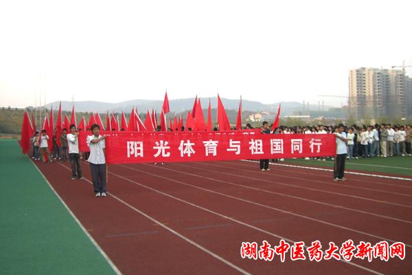 10 月 28 日 ,我校含浦校区体育运动场上彩旗飘扬、激情飞扬,第二届全国亿万学生阳光体育湖南中医药大学冬季长跑活动启动仪式在这里隆重举行。学校党委副书记、副校长黄政德教授、党委副书记陈弘教授出席启动仪式。党委副书记、副校长黄政德教授宣布第二届全国亿万学生阳光体育湖南中医药大学冬季长跑活动正式启动。