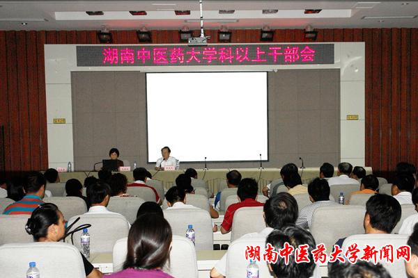 8 月 30 日 下午 3:00 ,学校在含浦校区国际交流中心学术报告厅,召开科以上干部会议,校领导和全体处级干部、科室负责人、教研室主任参加了会议,蔡光先书记主持会议并作了重要讲话,尤昭玲校长对学校暑假期间的工作进行总结对新学期工作进行了部署和安排,周小青副校长对学校参与长沙市创建全国文明城市工作进行了动员。