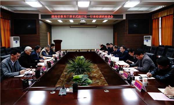 3月13日上午,湖南省教育厅党组成员、主任督学、副厅长、工委委员唐亚武一行来校考察调研,副校长何清湖、葛金文、彭清华等陪同调研。