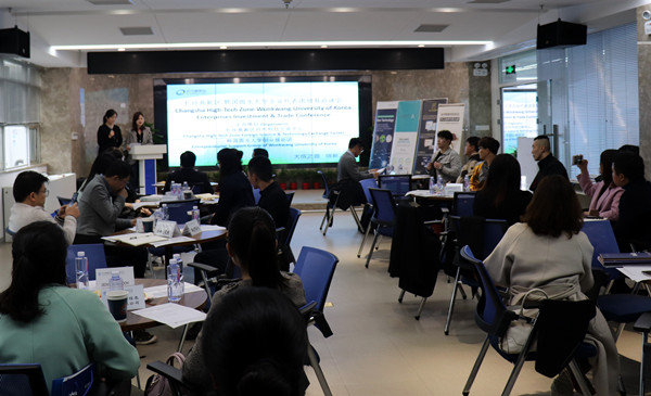 11日下午,创业支援团在国家长沙高新技术产业开发区举办了中韩企业贸易洽谈会。以海萍国际、圆梦生物为代表的12家中国企业与访问团的7家韩国企业就双方的产品生产线利用、流通渠道、市场资源共享等展开了“一对一”的对接。韩国企业全州制果与长沙高新国际科技商务平台签订了出口贸易协议。