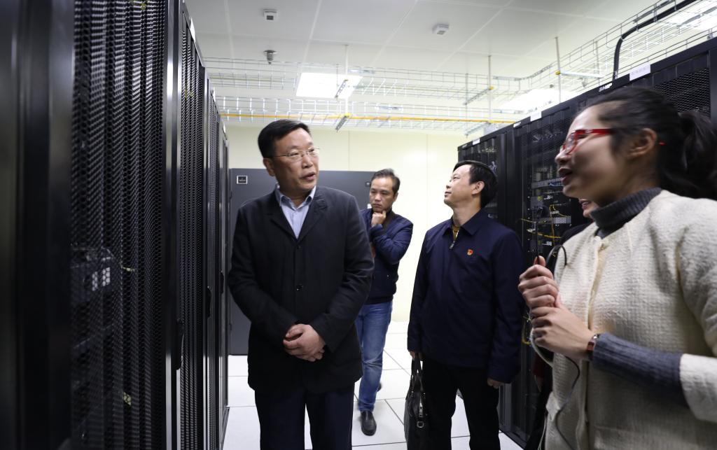 会后,杨文伟一行实地考察了学校网络安全与信息化中心核心机房等信息化基础设施。