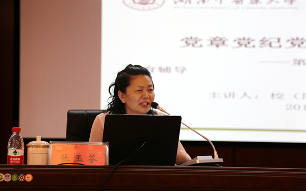 张玉芬在党章党纪党规教育专题党课上对近年来反腐败斗争的形势变化进行了深入剖析、对党章党纪党规进行了详细解读,围绕“不忘初心、牢记使命”的主题向全体党员干部提出了具体要求,一是加强学习和教育,不忘入党初心,坚定理想信念,严守党纪党规;二是提高能力和本领,坚守政治担当,提升政治素养。
