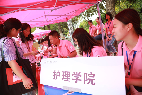 各学生组织的花式趣味迎新也是一道挪不开眼的风景线。校报学通社策划组织的“当报到日遇上生日-2019级新生见面会”,官微开展的“一拍立得,见证成长”活动,广播站推出的“最系列”录音采访,把初入校园的喜悦和温暖定格。校传保队表演的传统保健功法,团学小微的新生签名留言板,易班学生工作站的毛绒人偶易班熊,校艺术团街舞队的快闪等,为迎新现场增添了无穷的趣味和欢乐。“学校的迎新活动准备地很充分,一进学校,就看到那么多有意思的人偶、展板,还能感受拍立得,真得很开心!”中西医临床医学专业的新生王盼冉,拿着自己的通知书站在学院留影牌旁边,拍下了在湖中大的第一张照片。