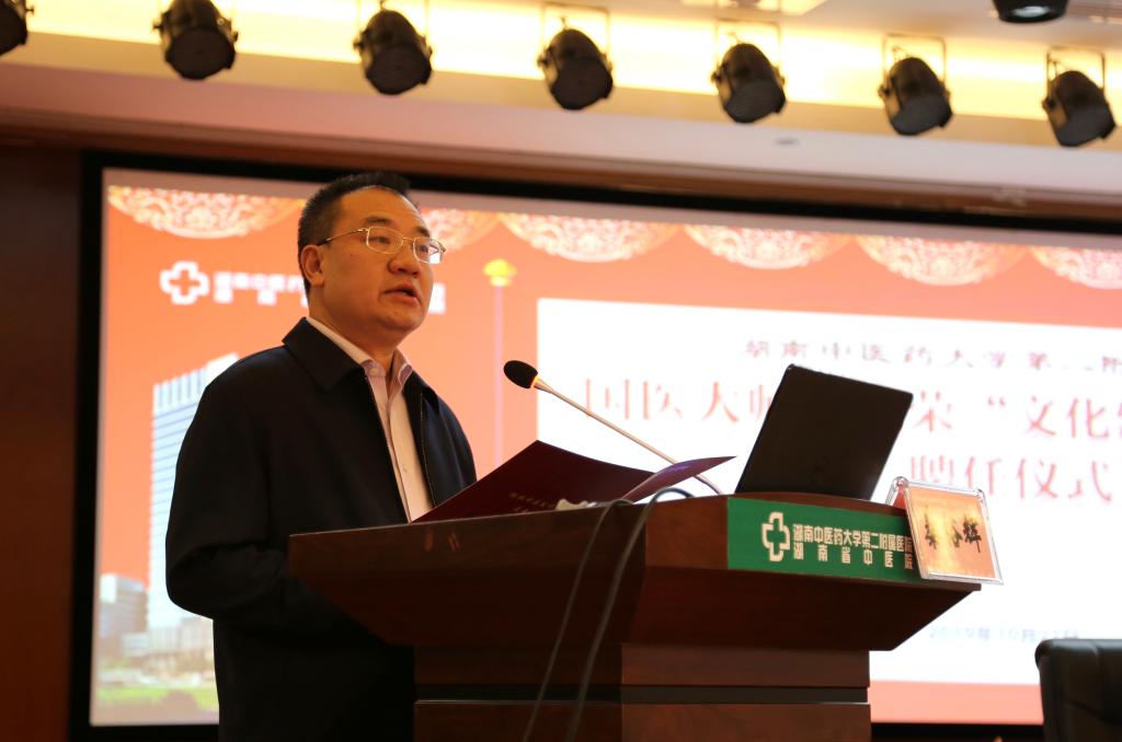 10月21日下午,国医大师孙光荣“文化建设总指导”聘任仪式在附二院外科楼25楼多功能会议厅举行。校(院)党委书记秦裕辉、湖南省中医药管理局副局长肖文明等参加聘任仪式。