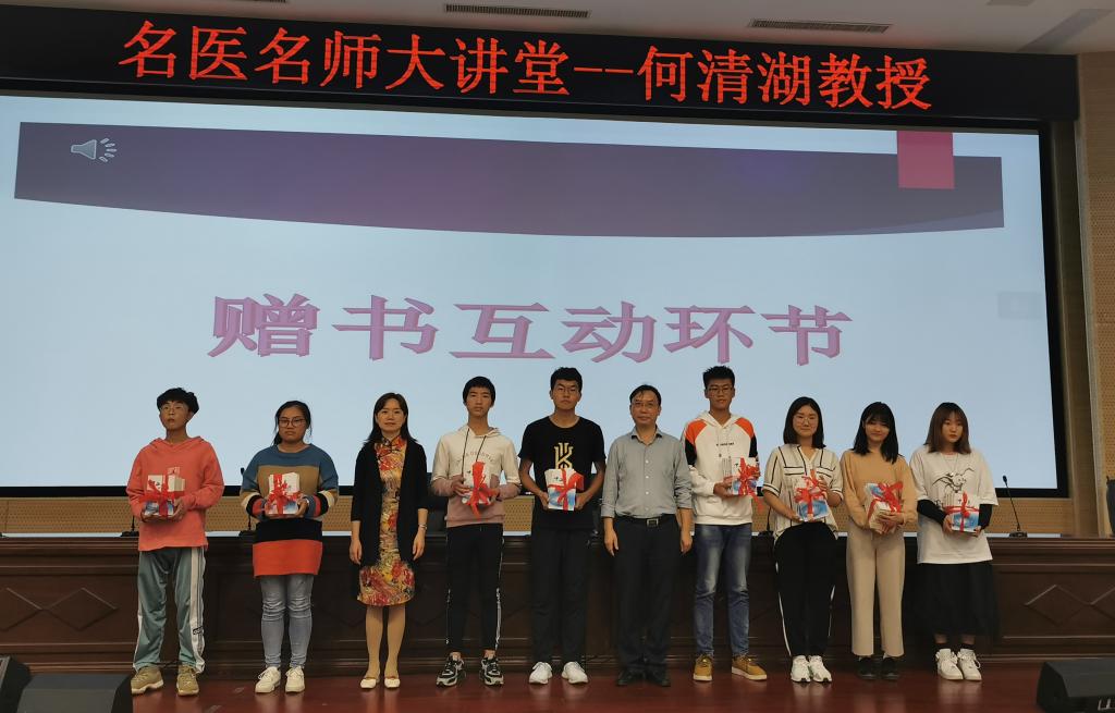 在互动环节,何清湖不仅耐心细致的解答了在场新生的困惑与问题,还为现场的新生赠送著作《中西医的抉择——狼与羊的故事》。讲座现场气氛热烈,掌声不断,加深了中西结合临床新生对中西结合临床专业的认识。