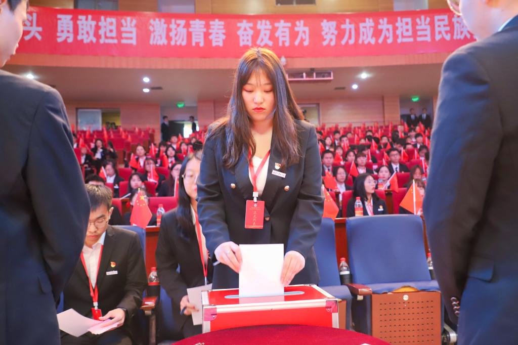 葛金文希望各位代表认真履行权利,以饱满的政治热情和严肃认真的态度开好本次大会;希望青年学生刻苦学习、修明笃实并将爱国情怀厚植于心,加强学生会自身建设,提高各级学生会组织的凝聚力和战斗力。