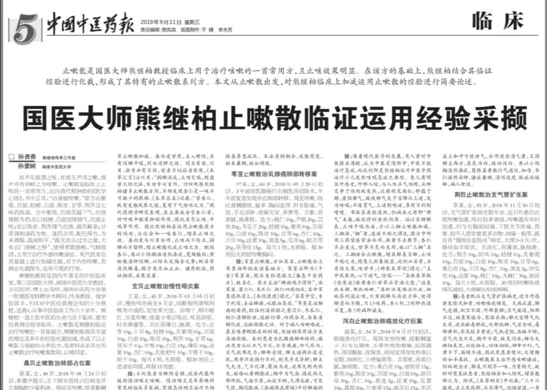 9月18日开始,《中国中医药报》邀请国医大师熊继柏教授将其成长成才道路和宝贵临床经验加以总结梳理和传播,在“临床”版面进行连载,将于近日连载结束。系列文章用以开启行业同道思维,进一步树立信心,传承精华,守正创新,强化从事中医药事业坚定信念,并且做到学有可寻,真正提升中医临床专业能力,受到业内人士的广泛好评。