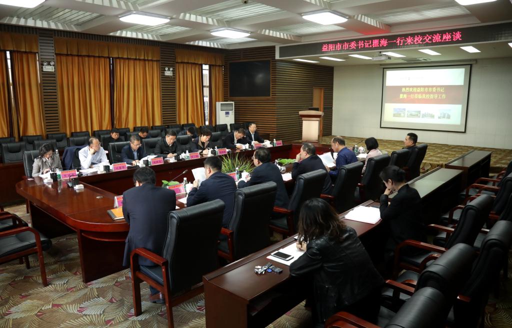 11月15日,益阳市委书记瞿海一行来校调研考察,市、校双方就全面战略性合作召开座谈会。