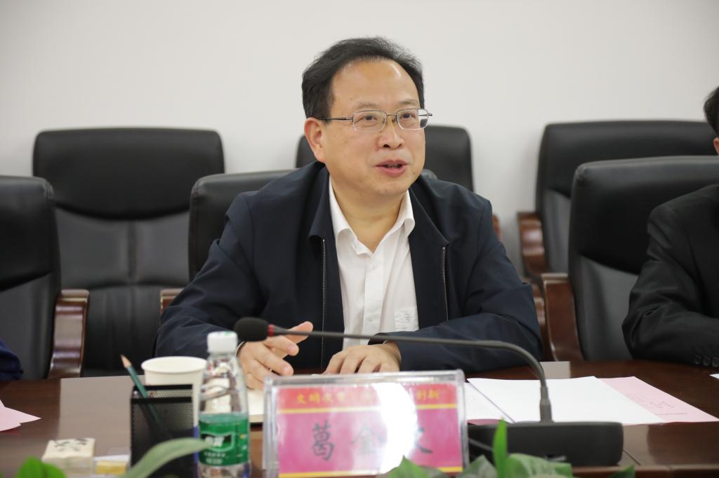 廖菁从教学、科研、人才队伍建设等方面简要了学校基本情况。葛金文以习近平总书记关于“为什么培养人、培养什么人,怎么培养人”的“三问”为切入点,与河南中医药大学的同仁们一起分享了我校“四季养心”、“三大德育答辩体系”、“五位一体”的培养模式、党代表工作室等大学生思想政治工作的经验,并就如何做好学生工作进行了精辟阐释。