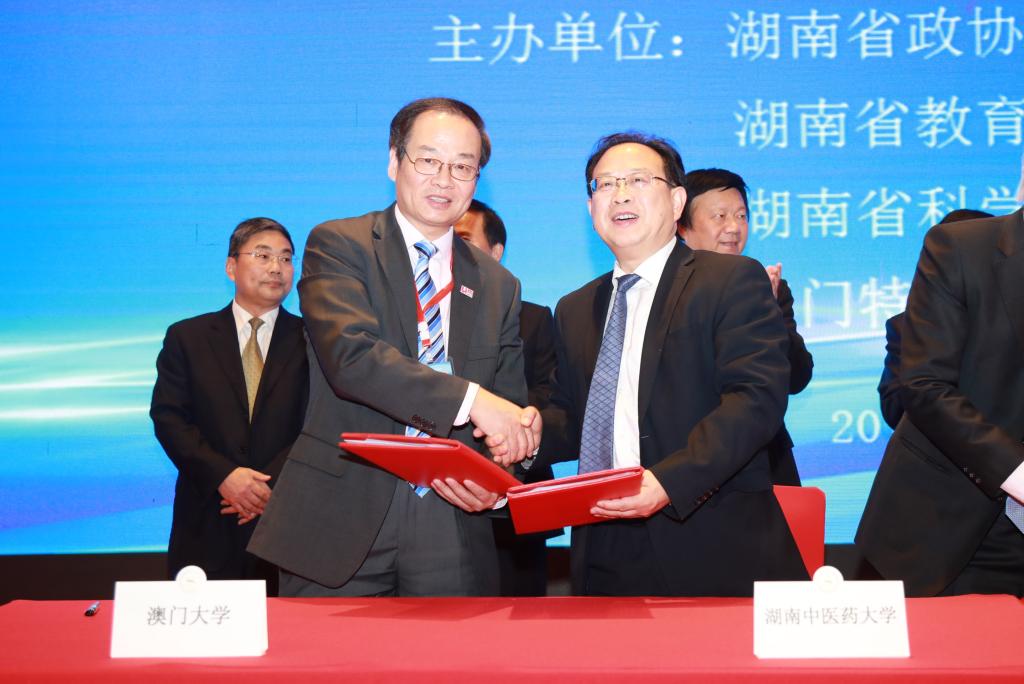 下午,考察团一行与我校(院)长戴爱国,副校长葛金文参加了在长沙举行的以“推进合作创新,共促湘澳发展”为主题的对接交流会和项目签约仪式。我校与澳门科技大学、澳门镜湖护理学院签署了交流合作框架协议。