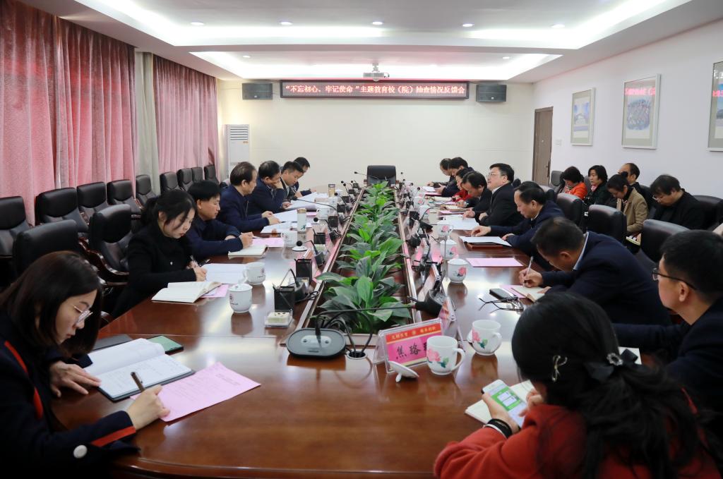 走访结束后,在学校一办二楼会议室召开了“不忘初心、牢记使命”主题教育抽查情况反馈会,指导组全体成员,校(院)领导班子全体在家成员,主题教育办有关人员和各督导组组长参加反馈会。会议由校(院)党委副书记、校(院)长戴爱国主持。