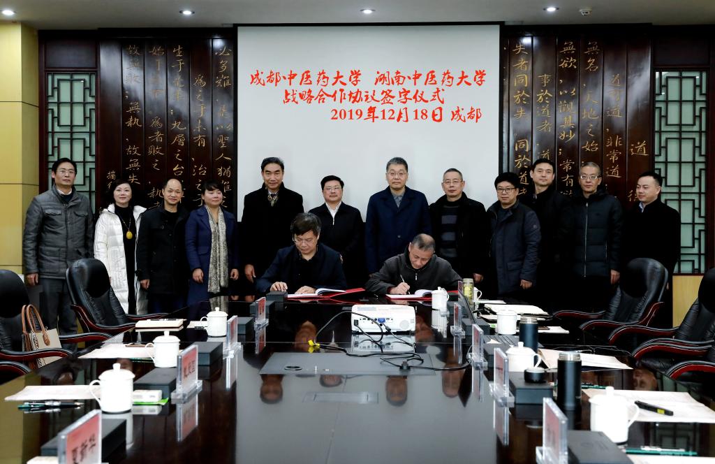 12月18日,校(院)长戴爱国、副校长彭清华,党委(学校)办公室、药学院等相关部门负责人一行赴成都中医药大学考察学习签署战略合作协议。成都中医药大学校长余曙光、副校长徐廉,党政办公室、发展规划处等相关部门负责人参加签约仪式。