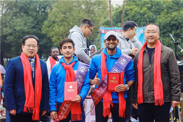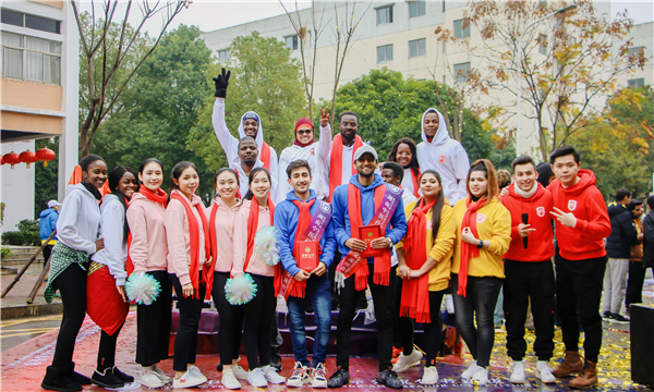 拍着非洲鼓、跳起民族舞、嗨唱中文歌,热情的“一带一路”国际学生在大学校园里“刮”起了国际风。12月23日,国际文化交流使者”万人推选活动在我校食堂前坪举行,不同肤色的学生尽情展现在华所学,为的是赢得全校万名师生的青睐,成为代表母校的“国际使者”。副校长葛金文到场观摩并颁奖。