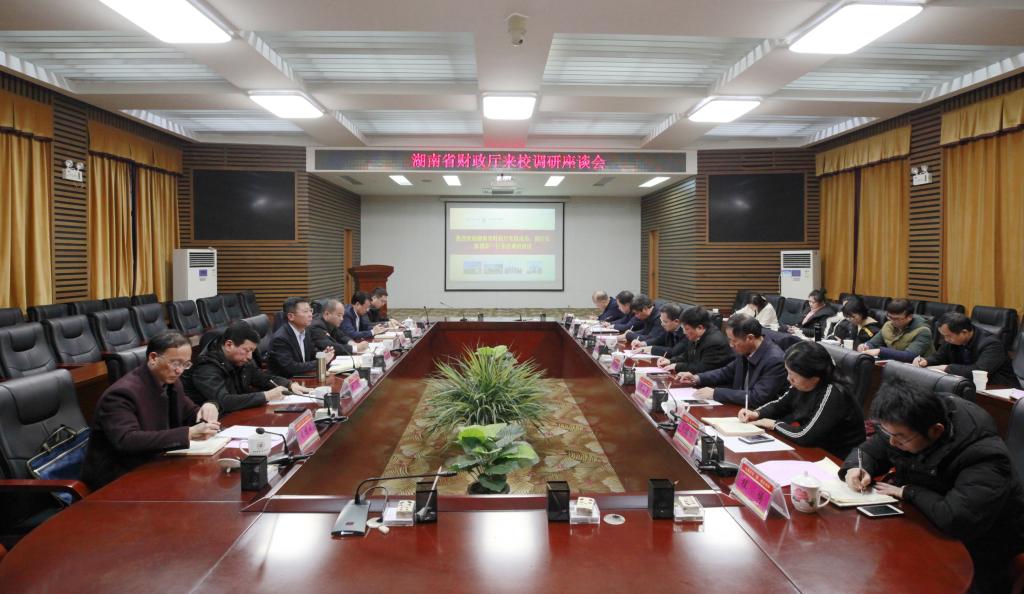12月25日下午,湖南省财政厅党组成员、副厅长陈博彰与科教处、文化处、资产管理处、农业处相关负责人一行深入我校调研,我校(院)党委书记秦裕辉,校(院)长戴爱国接待了陈博彰一行,双方在行政楼一楼会议厅召开座谈会。副校长彭清华,校(院)党委委员、宣传统战部长焦珞珈,计划财务处、发改处、资产处等相关部门负责人及在校省人大政协委员参加会议,会议由彭清华主持。