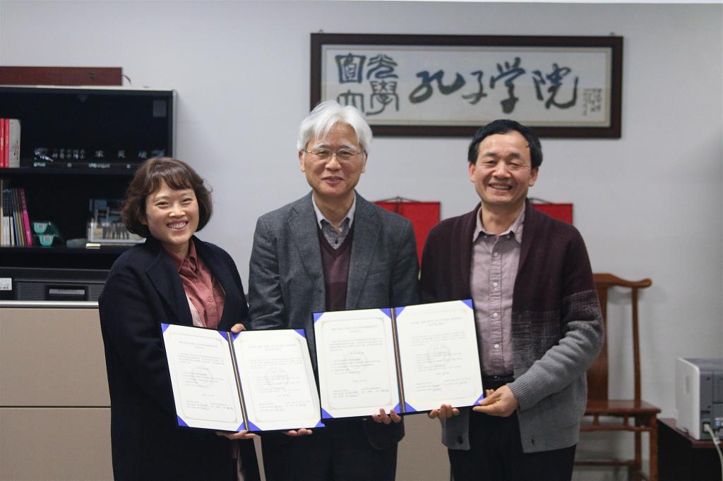 12月26日,韩国圆光大学孔子学院与韩国全罗北道中学汉语教师研究会就初高中汉语教师联盟签订协议。圆光孔院院长刘向前教授、宋昊埈教授、研究会汉语教师代表等出席了签订仪式。协议旨在促进汉语教师互相学习、共同进步。促进汉语教育事业的发展和增进中韩文化理解及沟通,并最终让越来越多的人加入学习汉语的大家庭。