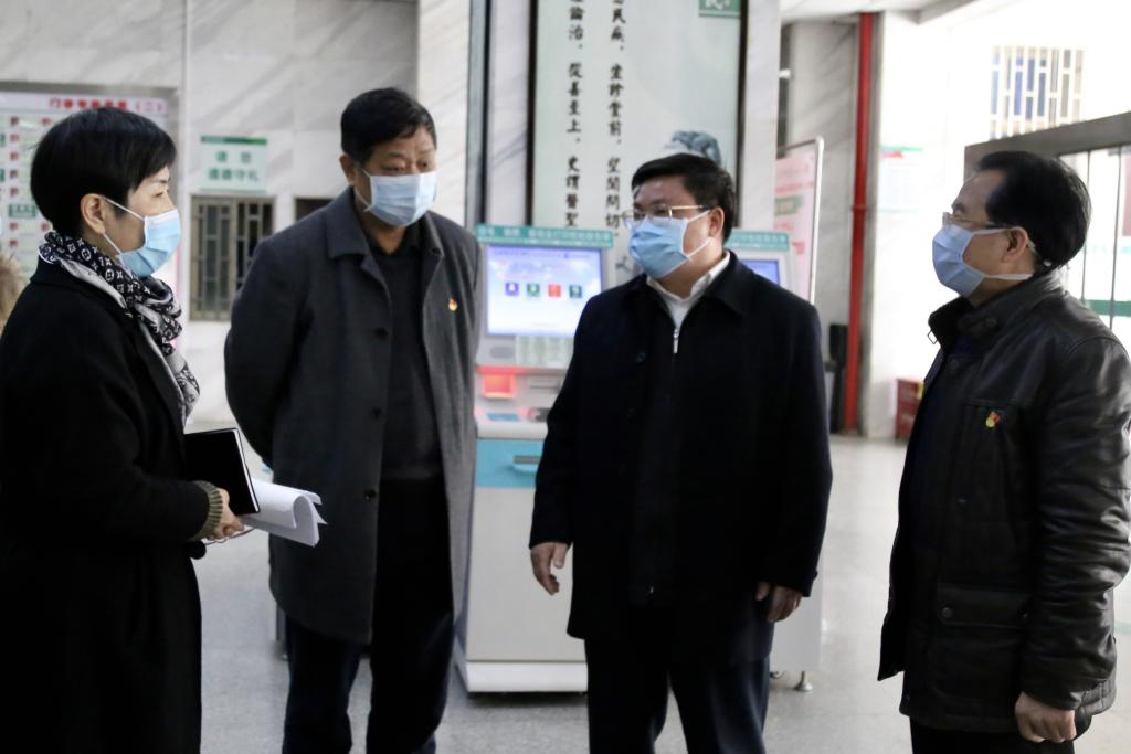 在附二院,戴爱国先后来到发热门诊、预检分诊台、急诊室等地现场查看,深入了解发热患者的就诊流程、诊治措施等疫情防控工作及应急物资储备、卫生检疫、通风消毒等情况。听取了医院对新型肺炎疫情防控工作开展情况的详细汇报。