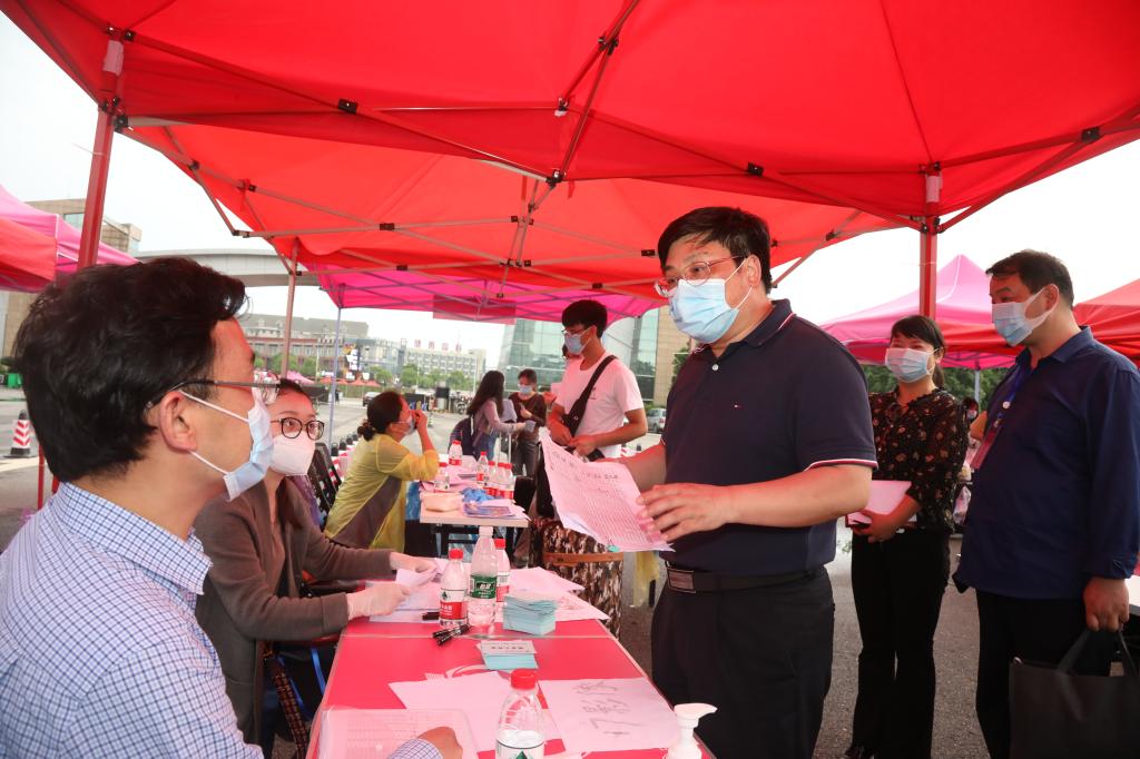 校(院)长戴爱国在学院报到处详细了解返校情况,并与学生亲切交谈,询问学习生活准备情况等,勉励同学们尽快适应返校生活,为全面复课打下坚实基础。