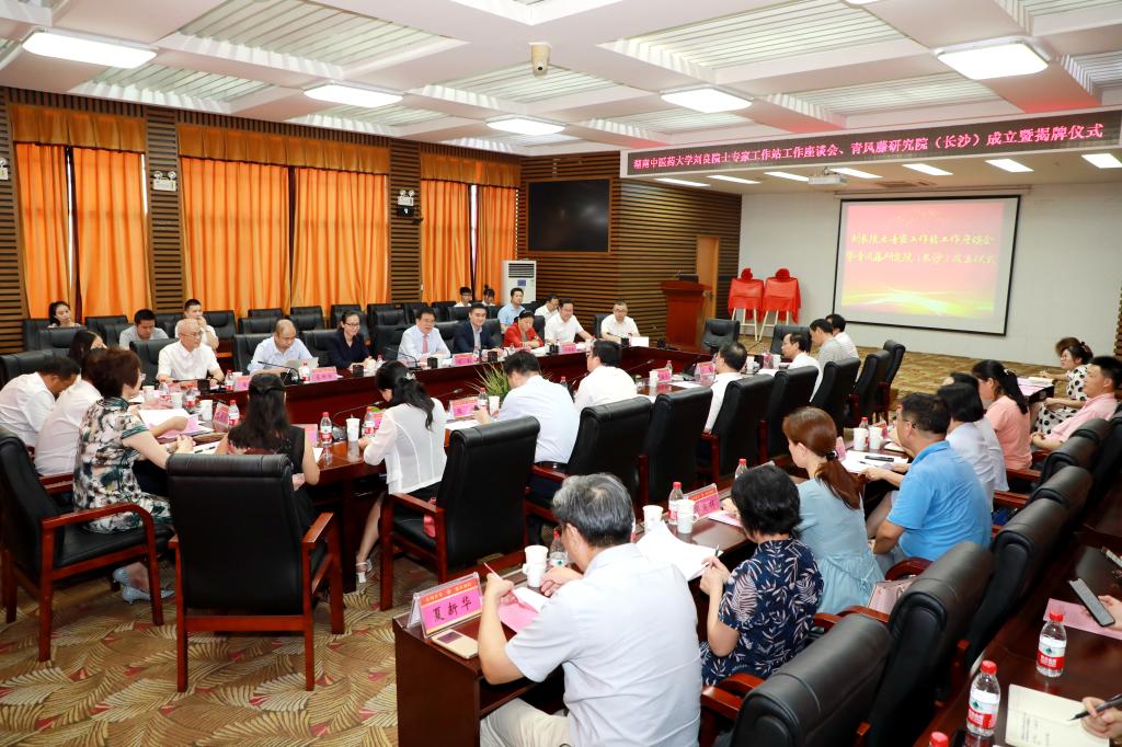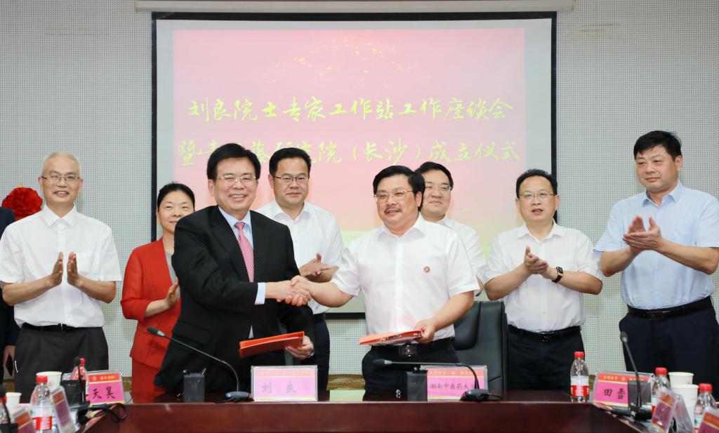 我校作为共建单位与刘良院士专家团队、湖南正清制药集团股份有限公司签订了“刘良院士专家工作站合作协议”、“青风藤研究院(长沙)共建合作协议”及“组建青风藤临床研究中心合作框架协议”。刘良、秦裕辉、戴爱国、吴飞驰共同为“院士专家工作站”“青风藤研究院(长沙)”揭牌。