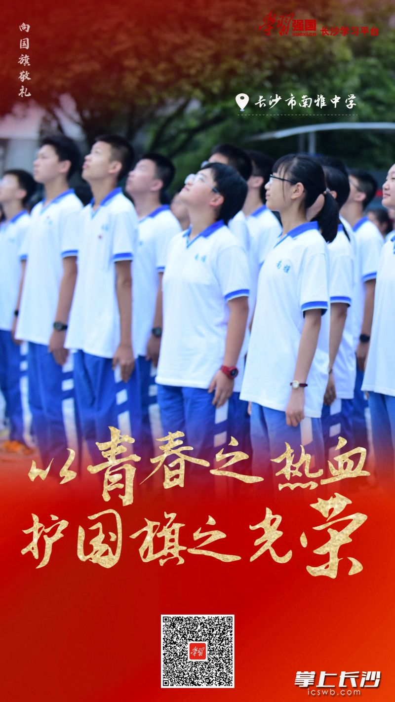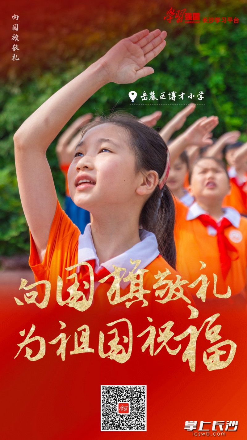 长沙晚报掌上长沙9月30日讯(全媒体记者 罗芳 宋雨溪 肖燕 石祯专)强国有我,请党放心!在新中国72周年华诞之际,“学习强国”长沙学习平台聚焦长沙市各大中小学“迎国庆”主题升旗仪式,推出“向国旗敬礼”海报,表达对伟大祖国、对新时代的礼赞,发出“以吾辈之青春,护盛世之中华”的深情告白。