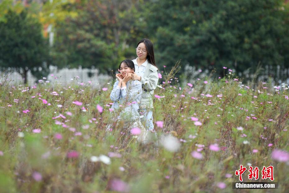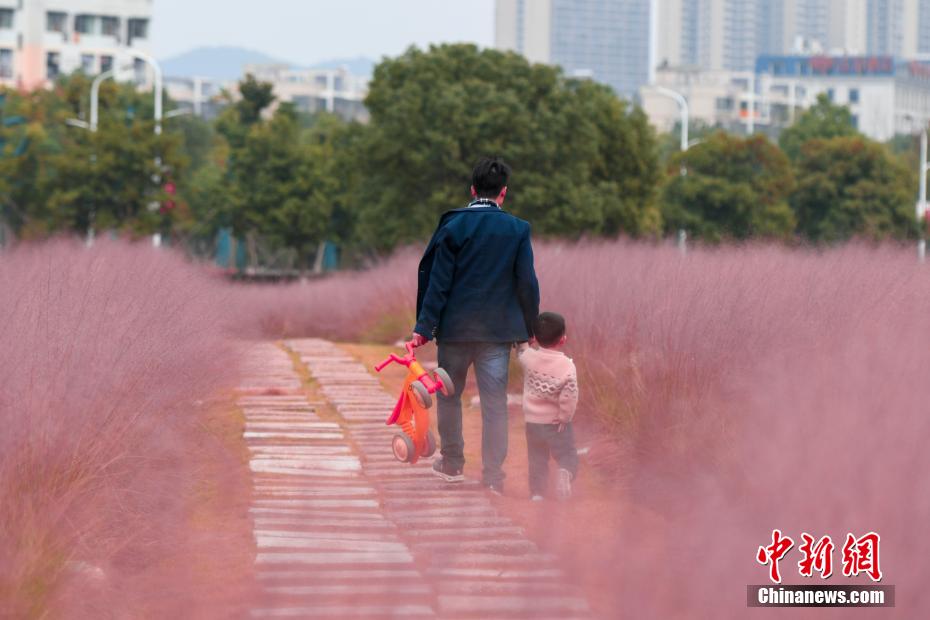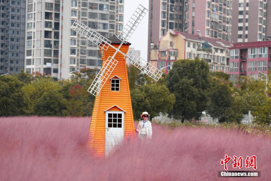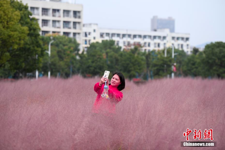 中国新闻网:长沙“粉色花海”盛开 市民赏花品秋色
