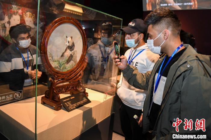 这幅广受关注的湘绣作品,被留学生们誉为“魔术般的艺术”。“栩栩如生,和真的熊猫一样,湘绣技艺真让人惊讶和钦佩!”沙吉说,他要把此次拍下的湘绣图片发到Facebook和微信朋友圈等社交媒体,让更多人认识湘绣。