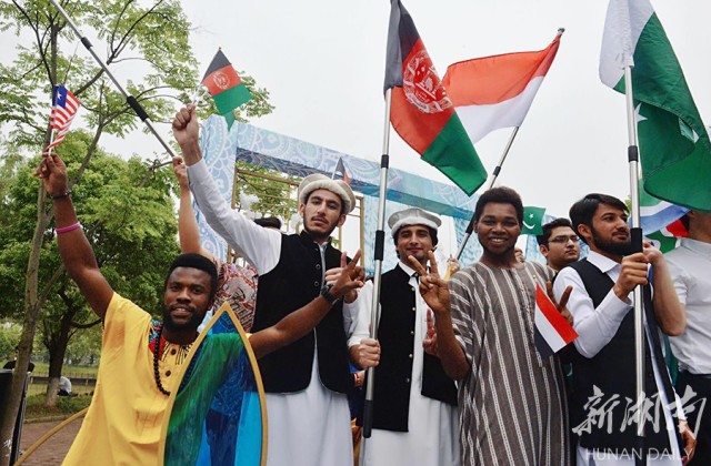 5月3日,湖南中医药大学的留学生在校园异域风情文化展上进行T台秀表演。当天,2018异域风情文化展在湖南中医药大学含埔校区举行。来自21个国家和地区的留学生进行了传统服饰丅台秀、特色美食展、民族乐器演奏、现场手绘、民族舞蹈展演等。此次活动不仅展现了该校多元文化兼容并包、百花齐放的新局面,也体现了中医药与周边一带一路国家文化的交融和国际影响力。湖南日报记者 徐行 通讯员 张觅 摄影报道