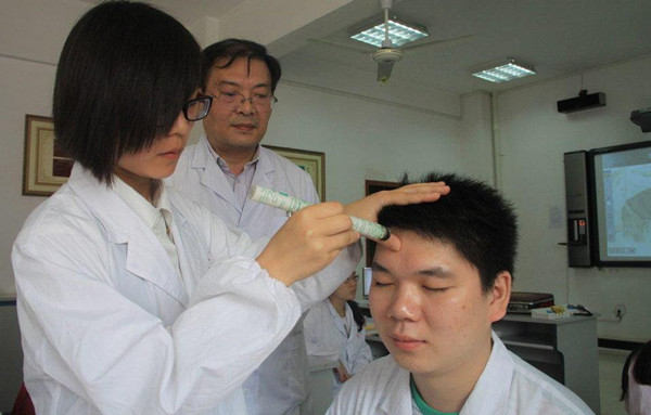 湖南中医药大学针灸推拿学院副院长顾星教授示范针灸。