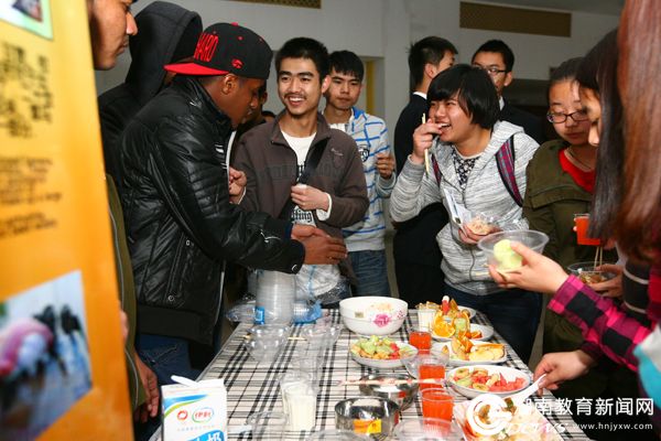 学校校长廖端芳、国际交流与合作处副处长程华初、国际教育学院全体教师和留学生及港澳台学生,以及学校内地学生代表等200余名共聚一堂,饶有兴趣地聆听各展台代表的介绍,品尝各地美食,现场气氛热烈。