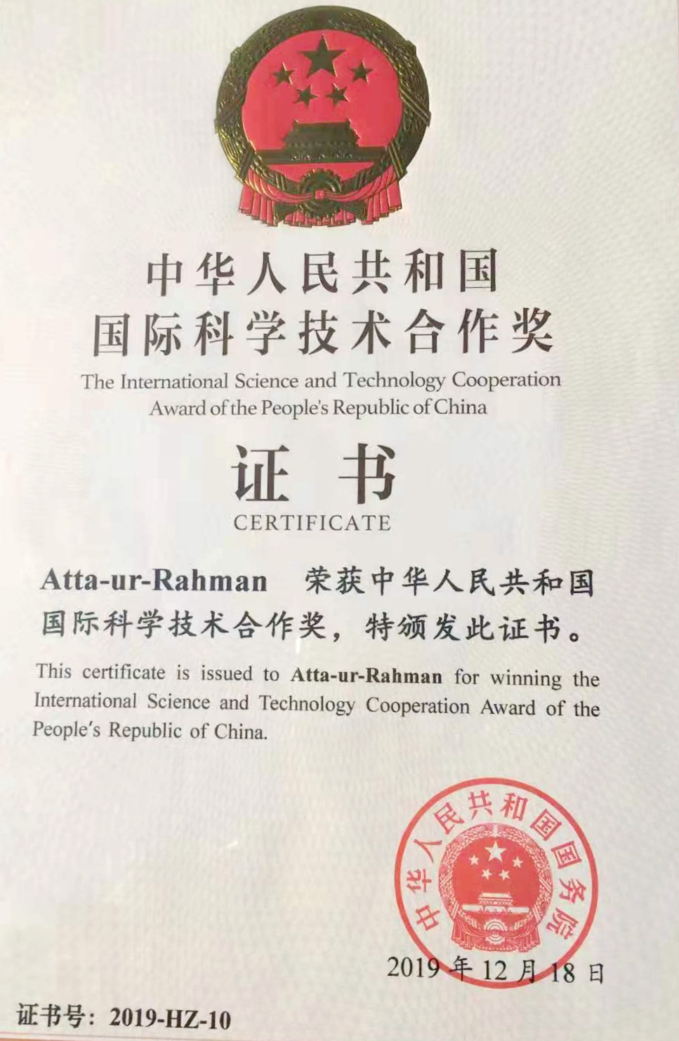 三湘都市报·新湖南客户端1月10日讯(通讯员 万颖 彭彩云 记者 杨斯涵 黄京)今日,2019年度国家科学技术奖励大会在北京举行,10名外籍专家荣获中华人民共和国国际科学技术合作奖。湖南中医药大学“Atta-ur-Rahman(阿塔拉曼)院士一带一路传统医药工作站”合作院士巴基斯坦阿塔拉曼教授荣获此殊荣。
