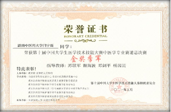 2021年中国大学生医学技术技能大赛中荣获中医赛道金奖