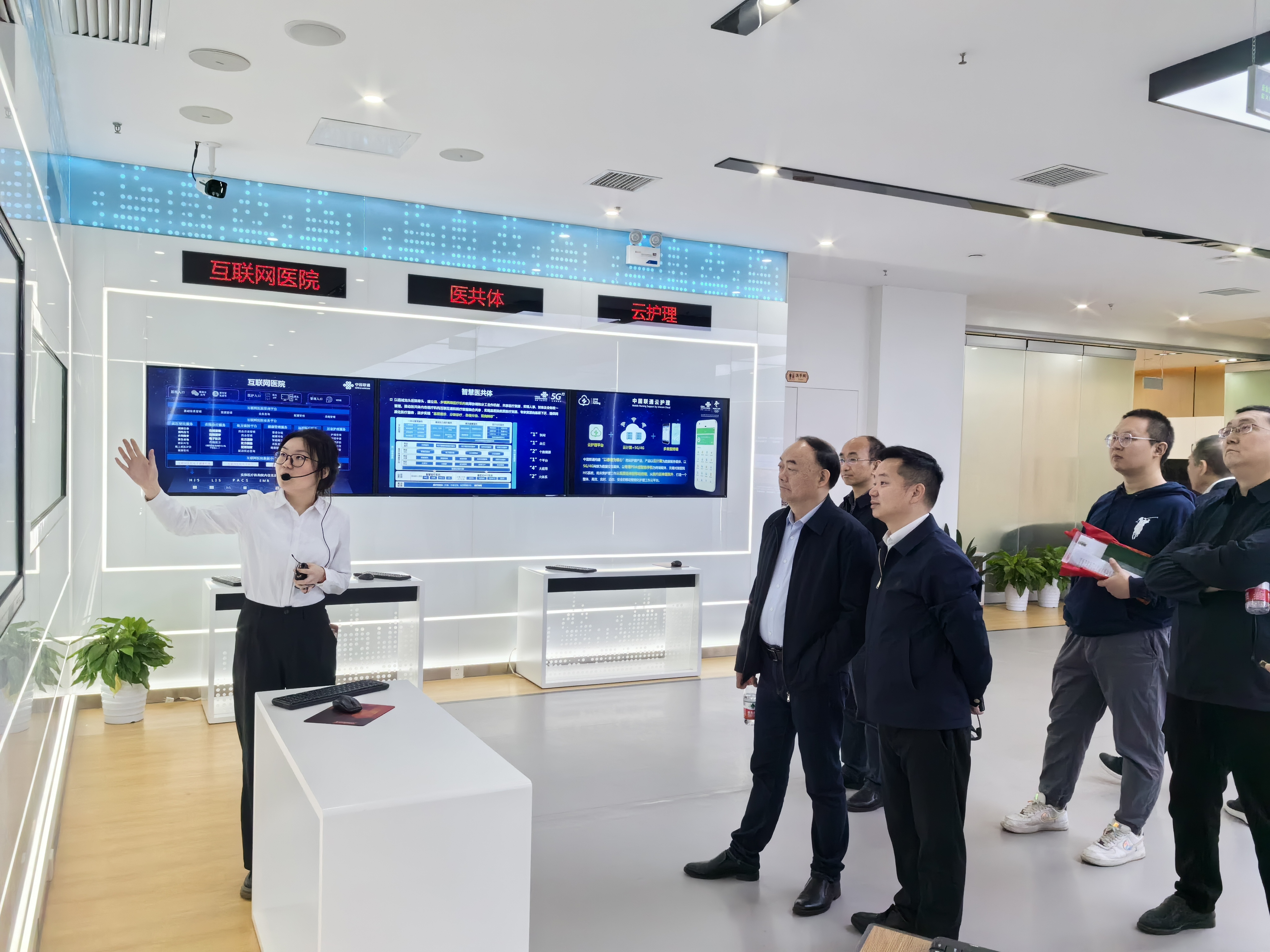 刘鸿翔一行参观了智慧湖南5G体验中心,深入了解5G科技创新建设成果及其在工业互联网、数字城市,尤其是智慧医疗等方面的应用,现场体验了“一网通办、一屏通管、一脸通校”以及“智慧医疗云、5G智慧病房、5G智慧急救”等应用场景。