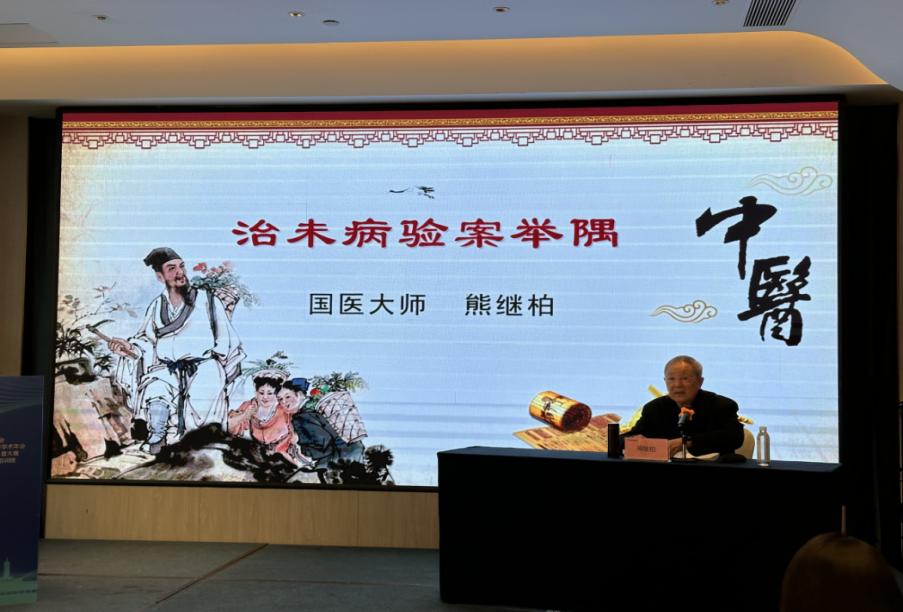 大会主论坛,熊继柏作题为《中医治未病验案举隅》的主旨报告,分享天人合一、万物变化背后的奥秘,他通过四个病案详细讲述了中医治未病在临床上的应用,并强调要深入学习中医治未病思想,将治未病理念贯穿于临床疾病防治全过程。最后,他亲切地与大家分享了自己早年从医的经历,勉励青年一代要会读书、善读书、好好读书。