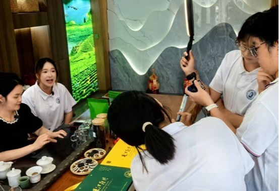 团队的助农实践在“云端”架起产销金桥。在黑茶文化直播间,志愿者们化身专业“荐茶官”,在镜头前深度解析安化黑茶的千年历史、独特工艺与健康价值,将琥珀汤色、醇厚陈香透过屏幕传递;精心设计的预售促销环节,为后续产品销售奠定了良好基础,更传播了深厚的黑茶文化底蕴。在蔬果专场直播间,观众跟随主播脚步,“云”览苍翠连绵的生态茶园、硕果压枝的野生果树,见证“不打农药、不施化肥”的有机种植实践。清新的山野气息、清澈的溪流、农人劳作的汗水,“生态有机”“源头直供”的核心卖点,在真实的绿水青山间得到无声而有力的佐证。