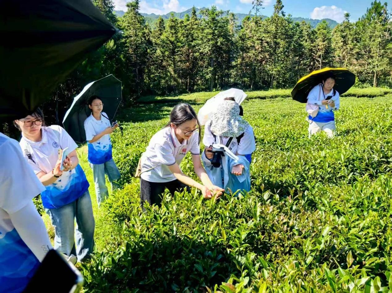 望闻问切,精准把握产业振兴之脉。6月30日,团队刚抵达安化渠江镇大安村便马不停蹄地深入产业一线和田间地头,展开扎实调研。在“渠之源”茶叶有限公司、安化县八五六茶叶有限公司等当地龙头茶企的车间与展厅,团队成员们凝神细观黑茶消毒、压制到成品包装的匠心工艺,亲身体验其醇厚韵味与独特保健价值。助农兴农,关键在于突破发展瓶颈,团队成员们与乡政府负责人、企业代表、种植农户围坐恳谈,深度聚焦制约产业发展的痛点难点,精准梳理出当地对电商技能培训、品牌塑造、新媒体营销的迫切需求。在茶园、果园里,大家深入调查掌握了黑茶与特色鲜果的生长环境、品质特性及生产规模,为后续“靶向”施策奠定了坚实基础。