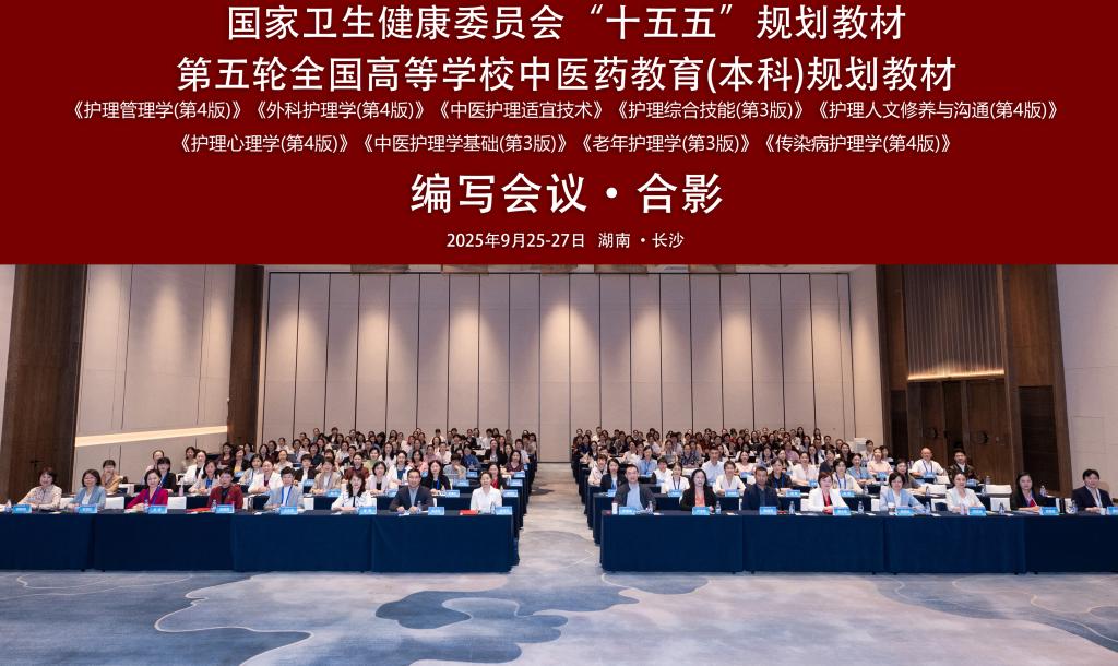9月26日,由人民卫生出版社主办,我校承办的国家卫生健康委员会“十五五”规划教材第五轮全国高等学校中医药教育(本科)规划教材编写会议在长沙成功举办。来自全国48所高校及医疗机构的近200位专家学者参会,共同围绕《护理管理学》《中医护理学基础》《护理综合技能》等9部核心教材开展深入研讨。我校副校长张玉芬出席。
