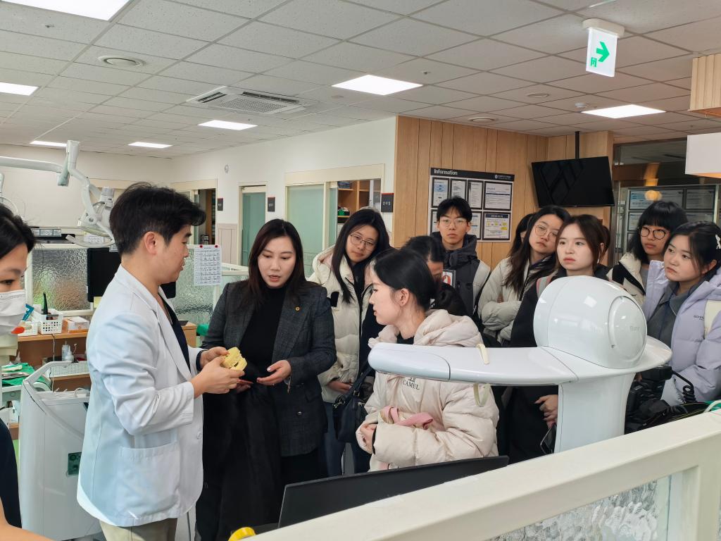 实践体验环节,同学们走进圆光大学附属韩医医院,观摩临床诊疗流程,实地体验韩医外治疗法,直观感受韩医学临床应用模式;在牙科医院开展诊疗观摩,近距离了解韩国口腔医疗服务特色;并赴庆南东医宝鉴村开展沉浸式体验,深化对传统医学临床应用的认知,真正实现理论与实践有机结合。